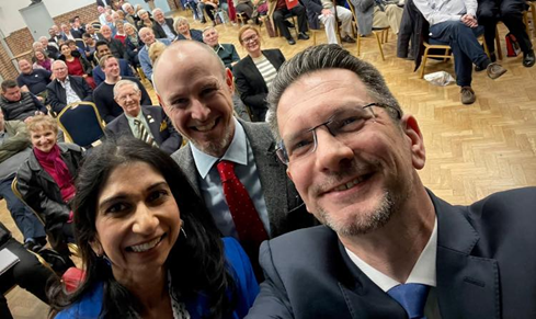 Ms Braverman herself has posted publicly about her ‘great friendship’ with Steve Baker – here they are together at Titchfield Community Centre in March 2023.