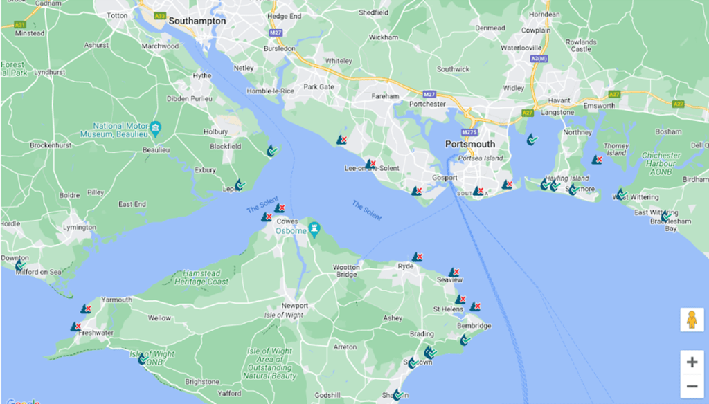 Image above is a screenshot taken from Surfer’s Against Sewage’s interactive map on the evening of Sunday 12th November 2023 – this map is the online version of the Safer Seas and Rivers Service (SSRS) and tracks real-time sewage discharge and pollution risks around the UK.